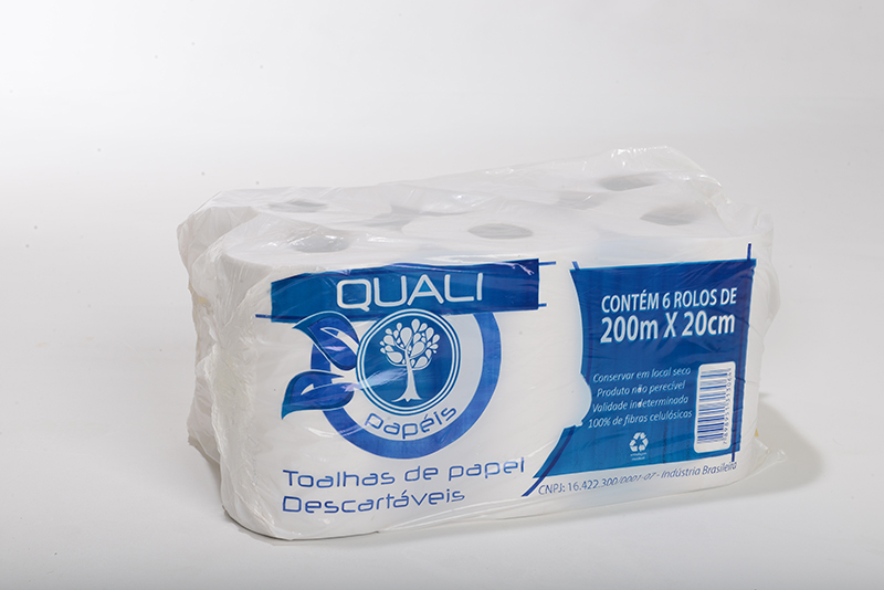 Papel toalha bobina Quali 200m Fardo com 6x200m.